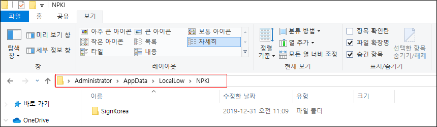 기존에는 공인인증서 발급 받고 PC에 저장하면 경로가 C:\Program Files\NPKI 에 저장이 되었습니다.
