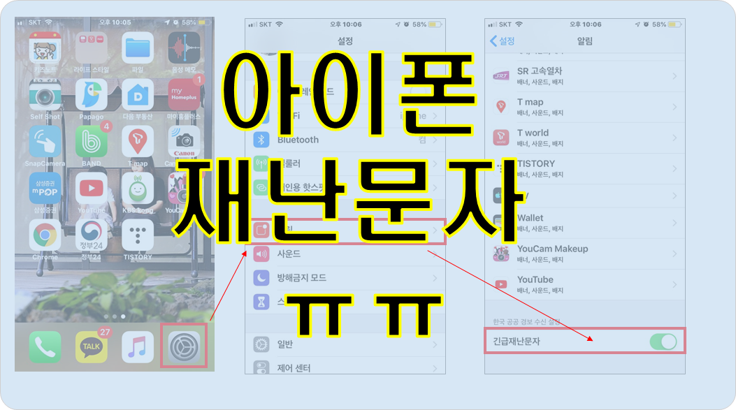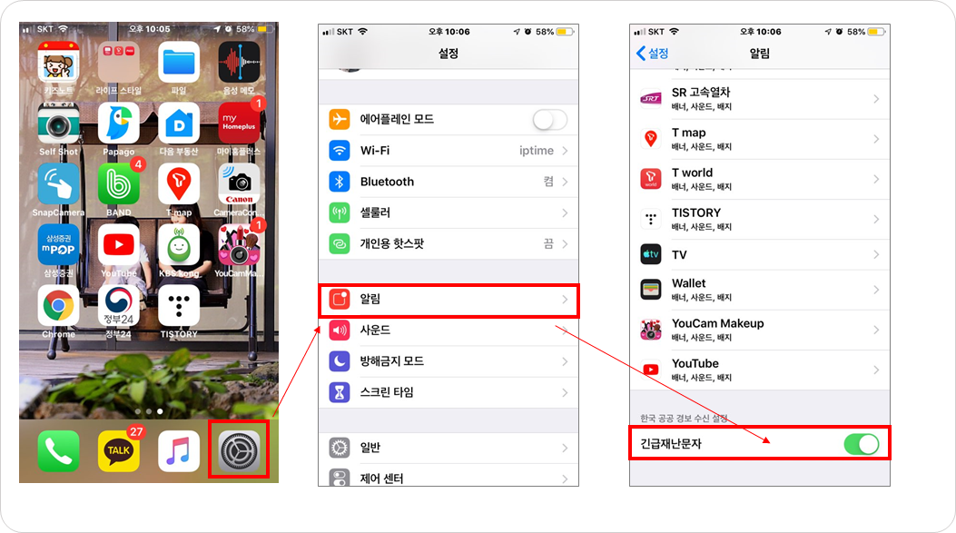 아이폰 재난문자 설정하는 방법
