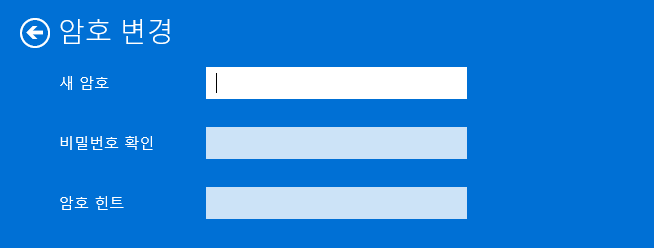 현재 암호가 맞으면 윈도우 암호 변경화면이 나오고 새 암호와 동일한 비밀번호 확인을 통해 윈도우 암호 설정을 완료 할 수 있습니다.