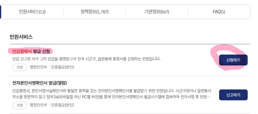 참고로 인감증명서를 발급받기 위해서는 사전에 인감도장이 등록되어 있어야 합니다. 동주민센터에 직접 방문해서 인감 신고를 해야 하고, 등록이 완료되어야만 인감증명서를 인터넷으로 신청하거나 오프라인으로 발급받을 수 있어요.
